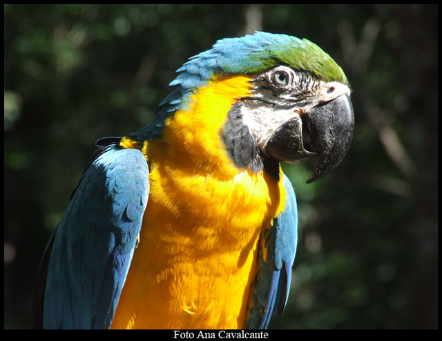 Comprimento: 80 cm. É localmente comum na copa de florestas de galeria, várzeas com palmeiras (buritizais, babaçuais, etc.), interior e bordas de florestas altas. Migra em certas épocas do ano, em busca de alimento. Voa em pares ou em grupos de 3 indivíduos, combinação mantida também quando formam-se bandos maiores de até 30 indivíduos. Desloca-se a grandes distâncias durante o dia, entre os locais de descanso e de alimentação. Faz ninho em buracos no tronco de grandes palmeiras mortas, pondo 2 ovos. Conhecida também como arara-de-barriga-amarela, canindé e arara-amarela.